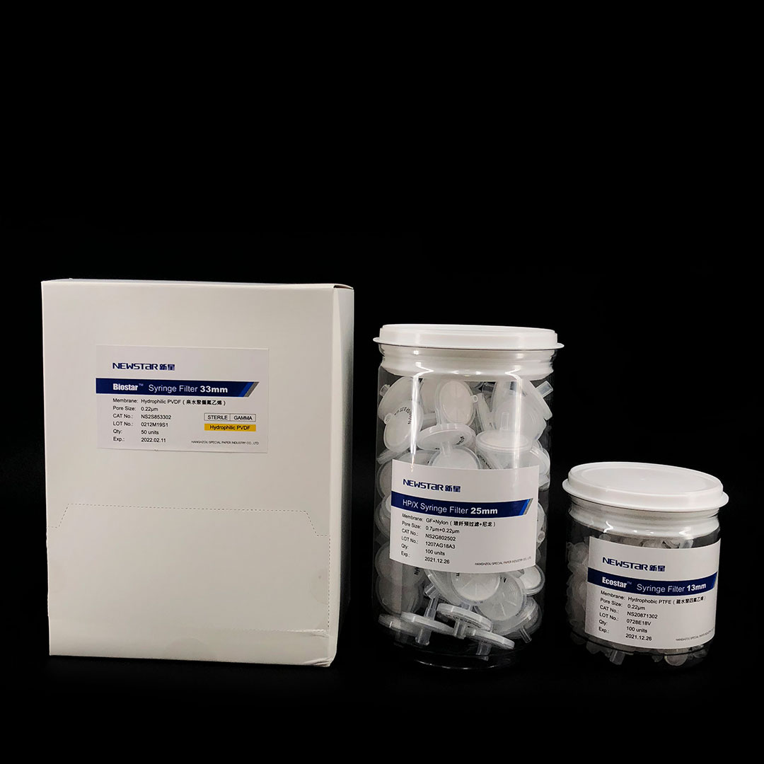 NEWSTAR syringe filters provide a reliable and efficient solution for sample preparation across a wide range of laboratory applications. Designed for precise and consistent filtration, these filters feature low-absorption construction that preserves sample integrity while effectively removing particulates and fine contaminants. Available in multiple membrane types—such as Nylon, PTFE, PES, PVDF, CA, and Glass Fiber—they are suitable for both aqueous and organic solutions. This versatility makes them ideal for HPLC sample preparation, ion chromatography, microbiology workflows, and environmental testing. Engineered for stable performance and ease of use, NEWSTAR syringe filters deliver the quality and accuracy required in research, industrial, and educational laboratories.